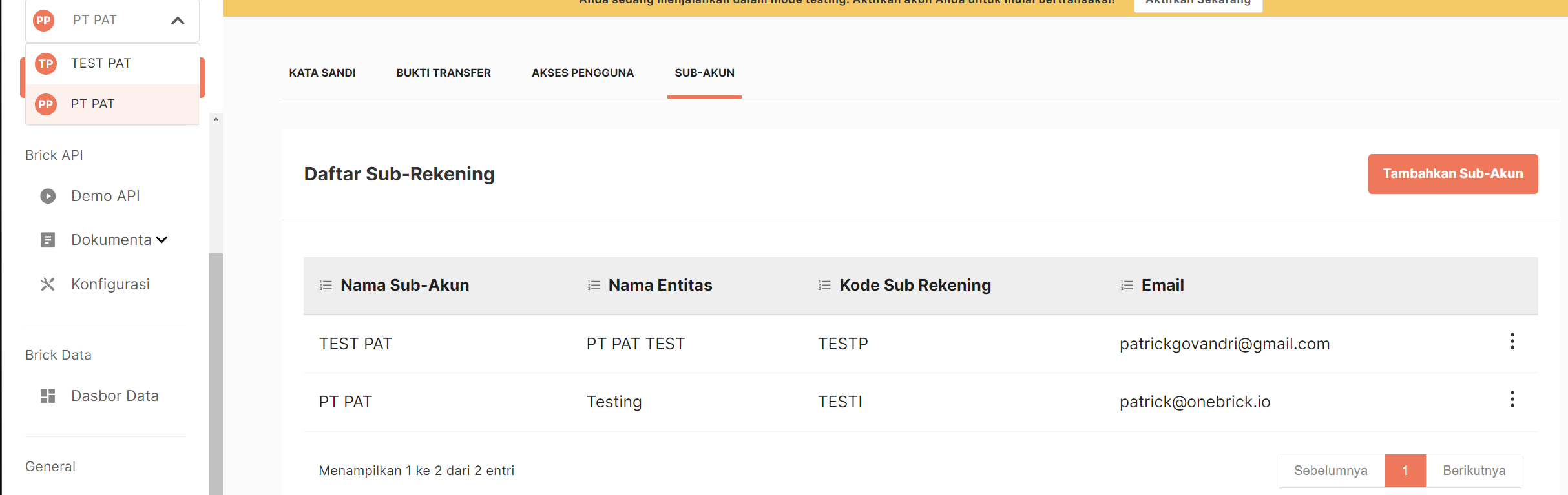Click Add Sub-Account and fill in the required data when this popup appears.